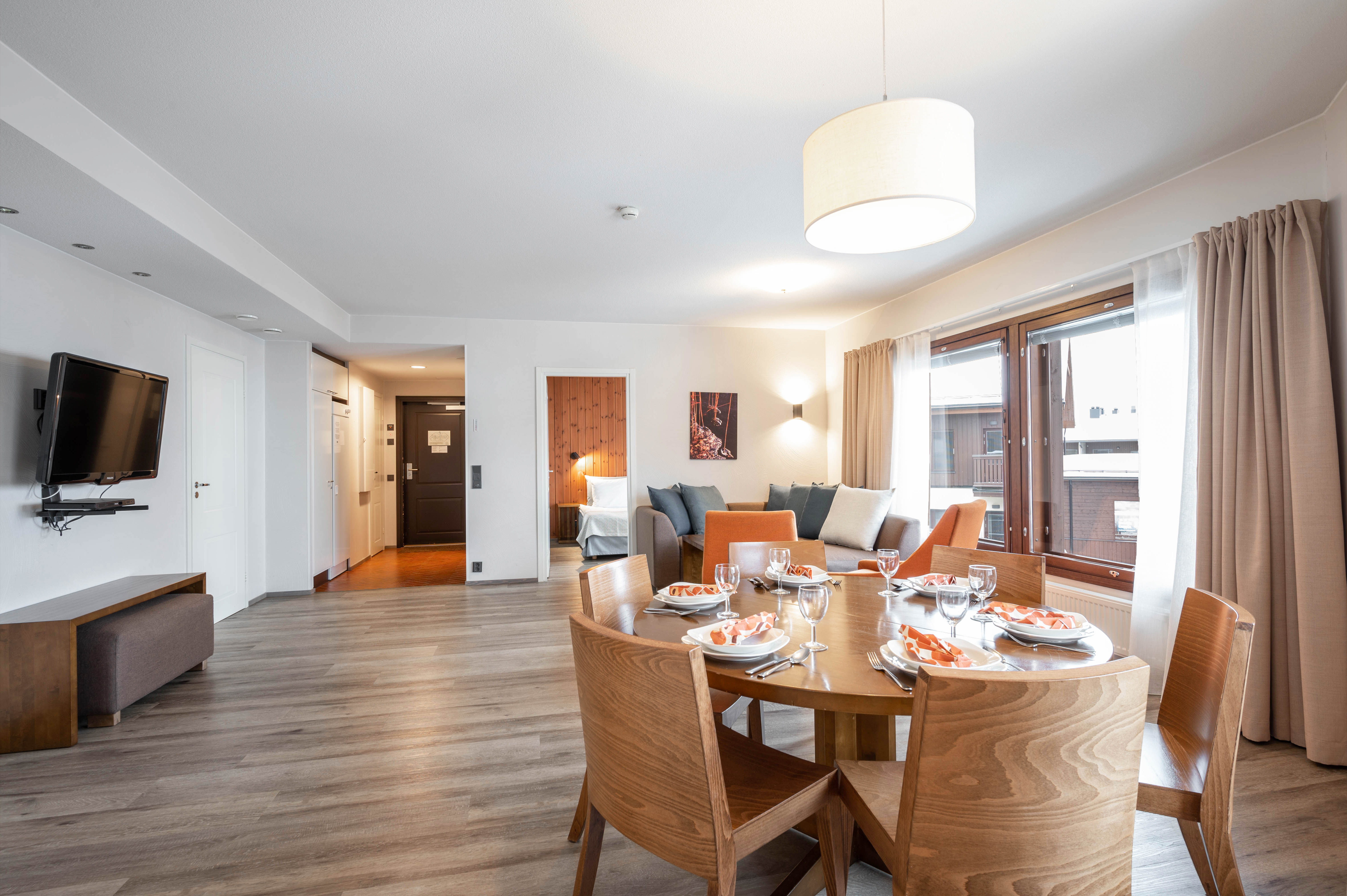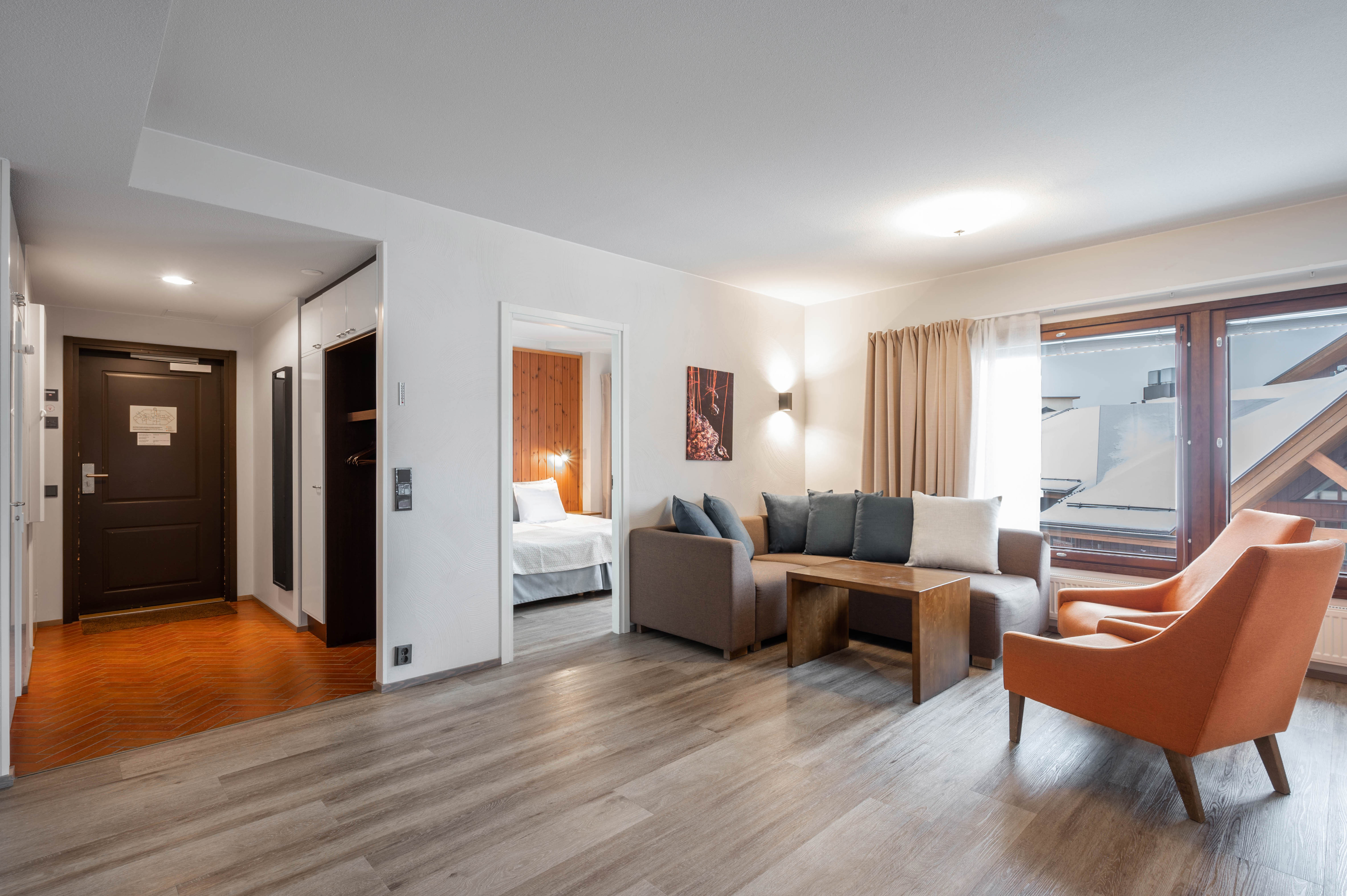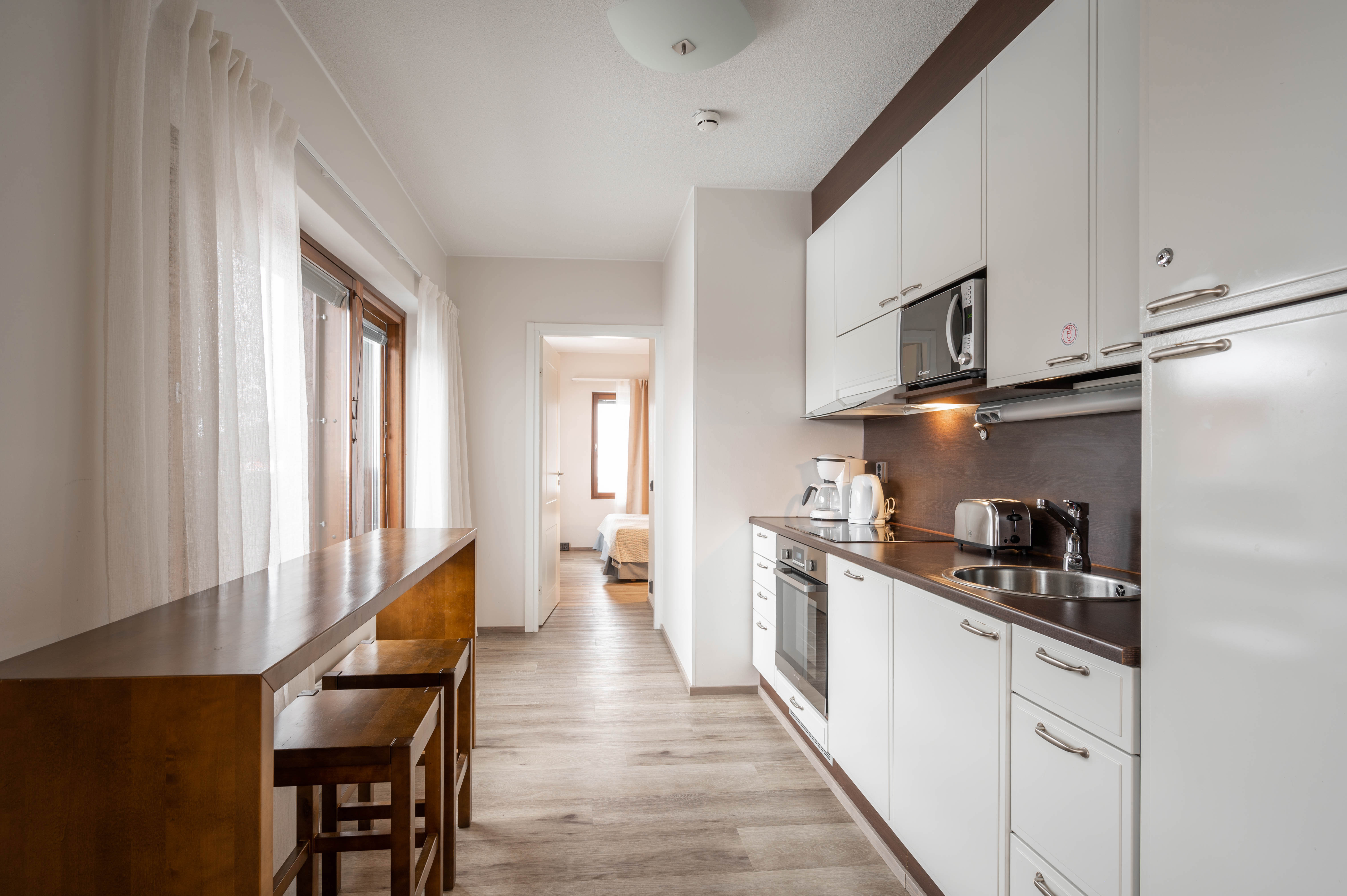 The apartment's storage facilities are specially designed for winter sports enthusiasts. All the apartments also have a separate ski locker, and a ski maintenance room is also available in the hotel's common area. You can park your car in the heated parking garage (320 places, parking fee). Free outdoor parking lots are available at Kelo and Stadion.