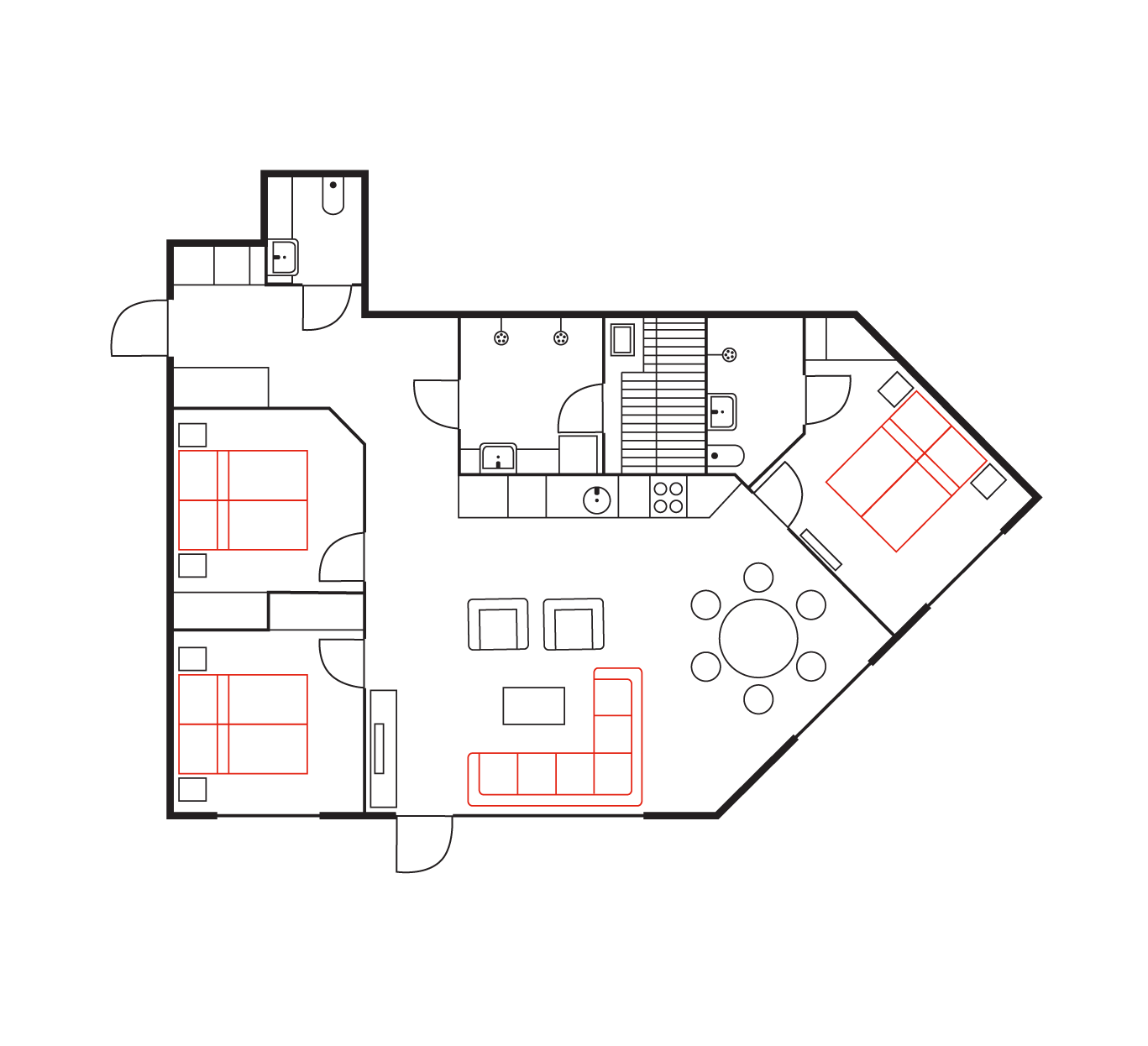 Renovated in 2021, RukaVillage94 has a living room, kitchen and 6-person dining area, as well as three separate bedrooms with twin beds. In the living room area, the sofa bed can be used as an extra bed for 1‒2 persons free of charge. The apartment has a private sauna department and balcony, as well as two separate WCs, one of them in the master bedroom.