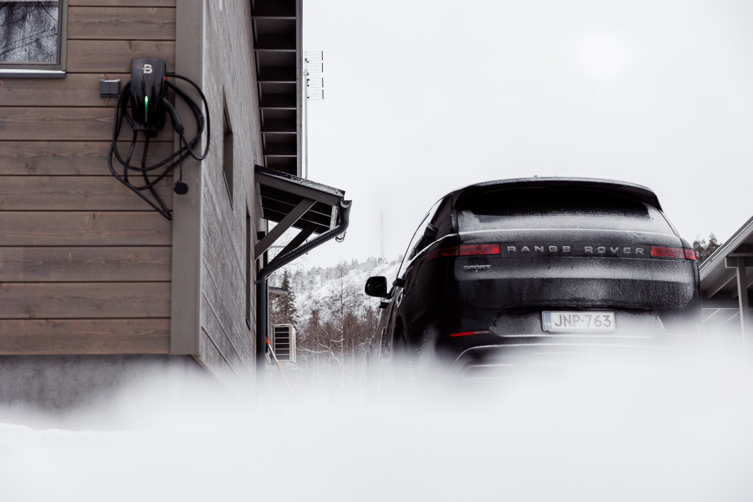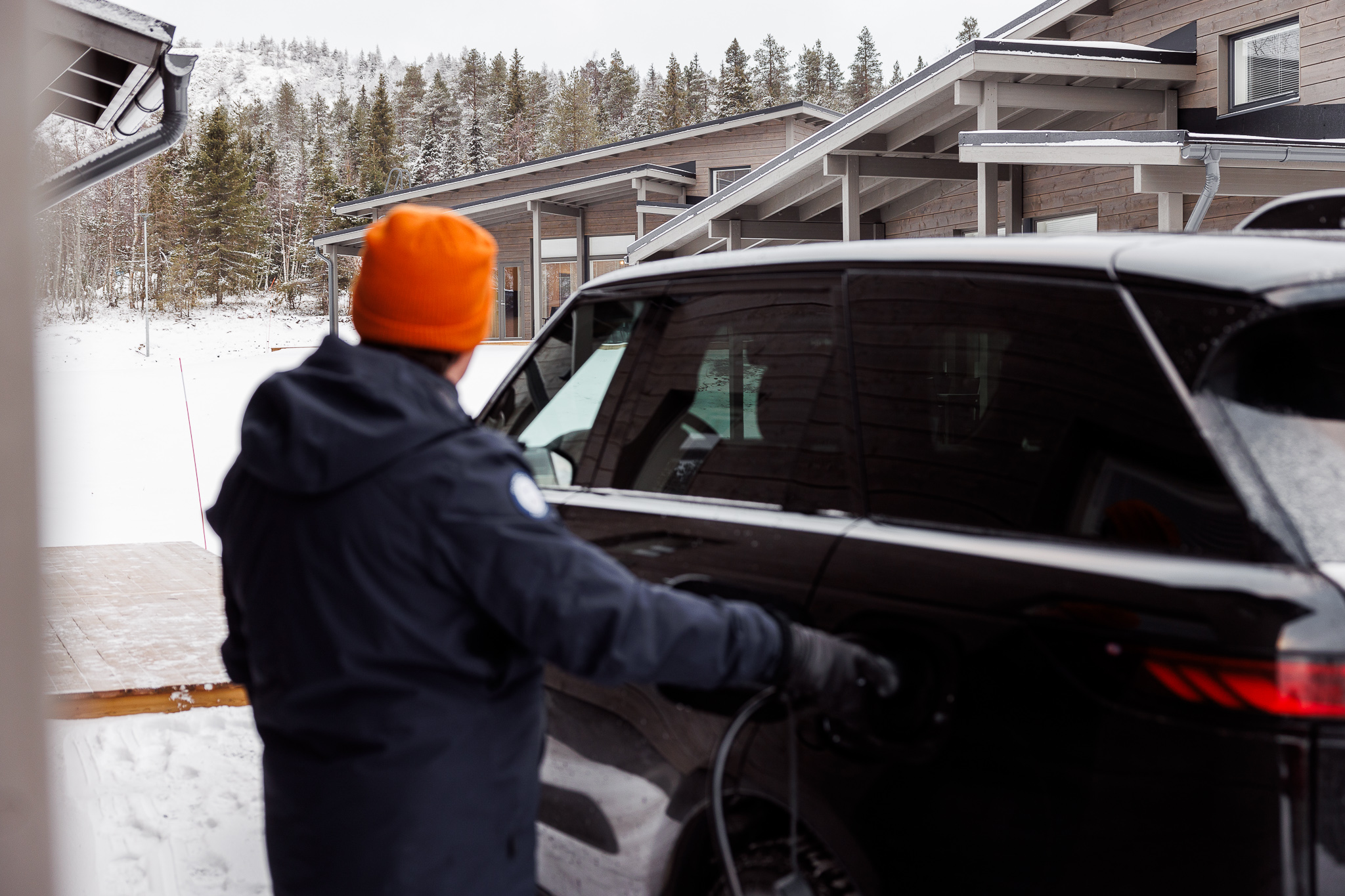 Sähköauton latauspiste Rukalodgessa. Kuva Mikko Santasalo.