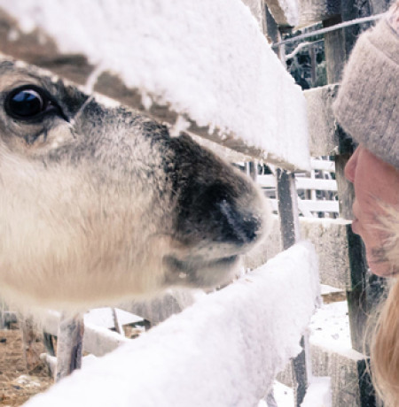 Experience an authentic reindeer farm on a 1,5 km reindeer sleigh-ride and visiting hundreds of reindeer. Visit our handicraft workshop and farm shop.