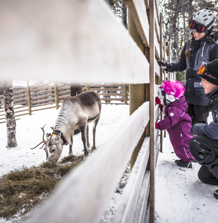 Come meet the reindeers and learn more about reindeer herding by the reindeer fence of Rudolf's adventure route.
