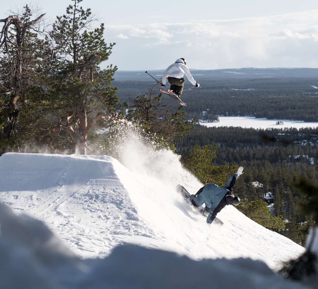As winter transforms into spring, Ruka's Vuosseli slope area becomes a unique playground for park riders, with fun tracks and obstacles suitable for park riding emerging on the fell. It's a bit like the competition arenas of Wappulounas, but not just for the duration of a single event – instead, from the end of March until May Day!