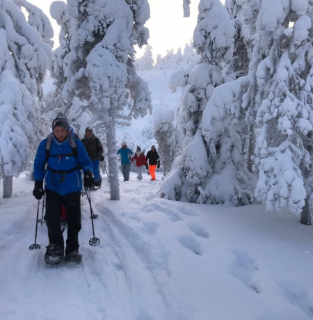 Snowshoeing in the most beautiful landscapes of the Ruka-Kuusamo in Oulanka National Park.