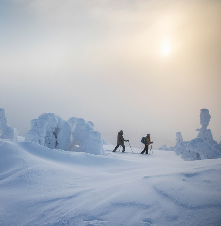 Snowshoes and skinbased skis open up the access to the trails of Oulanka, Riisitunturi and Hossa National Parks as well as the trails of Rukatunturi, Valtavaara, Konttainen and Pyhävaara.