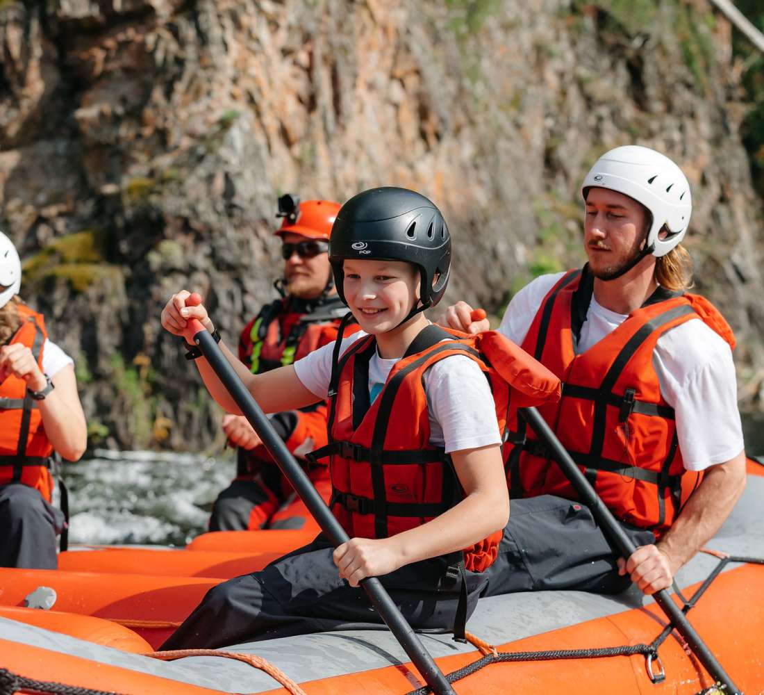 Perhe koskenlaskussa Kitkajoella. Kuva Jani Kärppä.