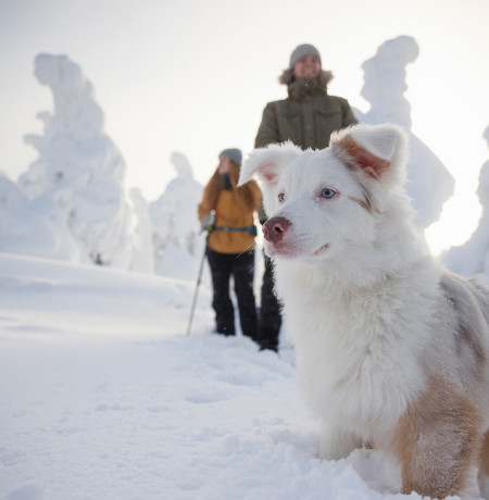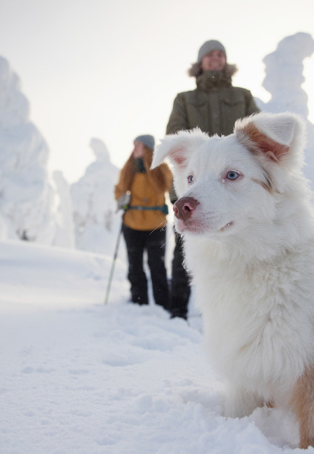 The Ruka-Kuusamo region has four cross country ski trails, on which you can ski with your dog, and plenty of hiking trails that are also suitable for pets.