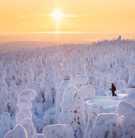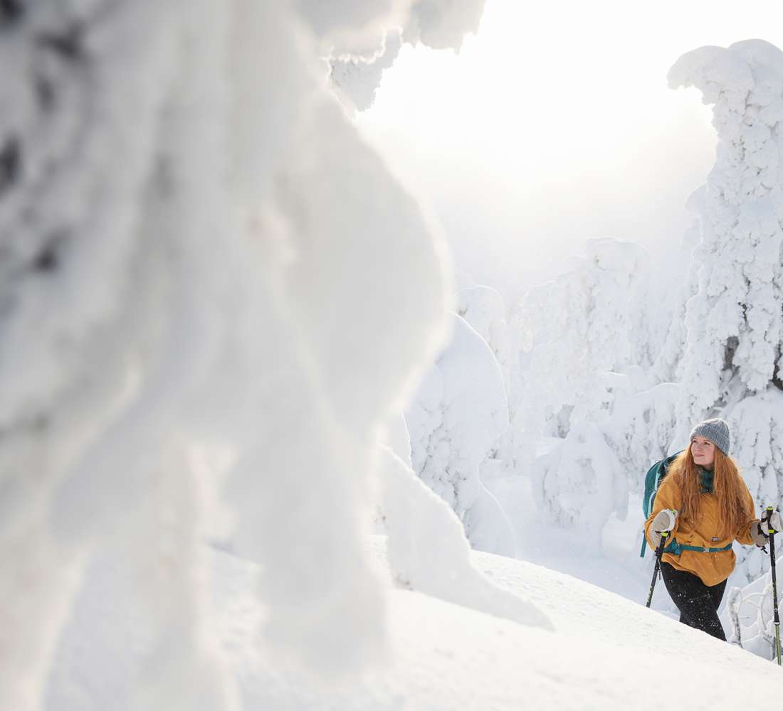 Besides the nice views from the top of Ruka, your social media feeds are bound to become full of beautiful winter sceneries of nearby Oulanka, Riisitunturi and Hossa National Parks. You can combine a nice, ecological workout on snowshoes with a search of scenery spots or Northern lights.