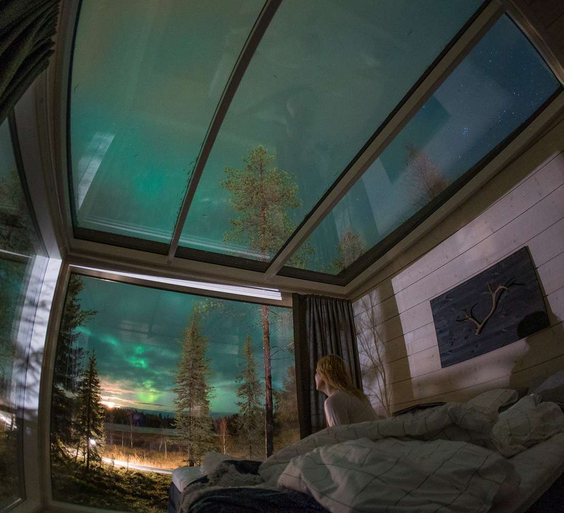 Modern Lappish accommodation comes with a delightful twist, as you can combine cosy lodging with the opportunity to admire the the Northern lights while lying comfortably in bed.