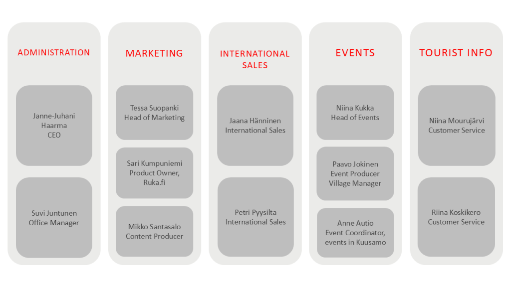 The e-mail addresses are in the form of frontname.lastname@rukakuusamo.fi unless otherwise stated.