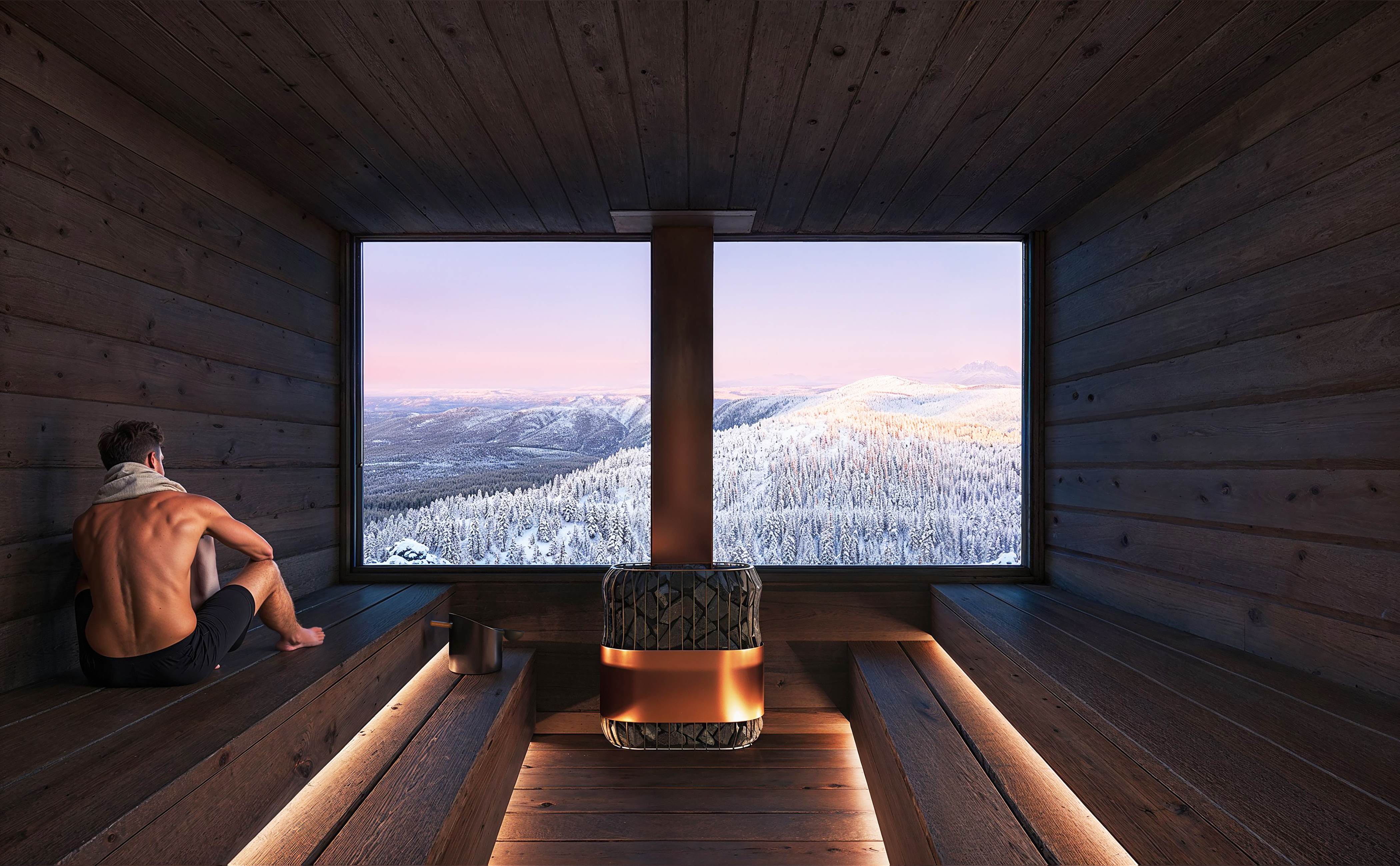 Ruka is building a scenic sauna restaurant at the top of Saarua, with giant windows that open directly to Valtavaara and Konttainen. Between baths, you can relax in the shelter of the covered terrace in the warm pool and lounge - enjoying the scenery and the fireplace.