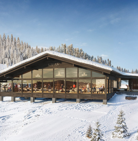 A much-needed landscape restaurant will also rise next to the sauna, serving as a lunch restaurant during the day and a dinner restaurant in the evening. You can get there by skis, chair lift or gondola. In the evenings, you can return to Ruka village for example by taking a snow racer. In summer, the restaurant is right next to the Karhunkierros hiking trail and near the starting points of Ruka Bike Park's bike trails.