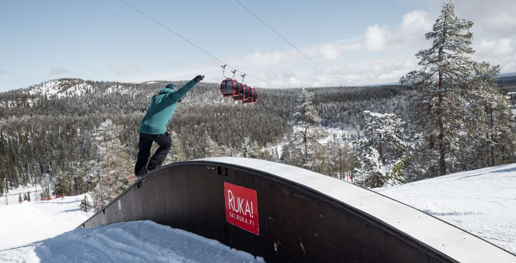 The slope features two versatile trick lines, with press boxes, rails, and jumps of varying sizes. A new chairlift has been built to serve Ruka Park Junior, and it's easy to visit Ruka Park Junior after finishing the popular red slope at Vuosseli.