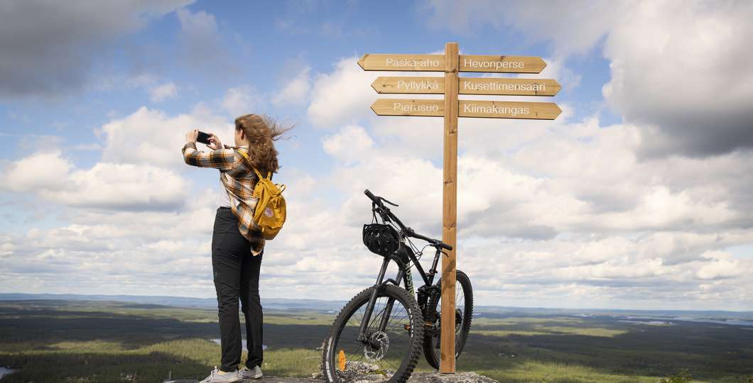 Iivaara offers great views to surrounding landscape of the whole Kuusamo area. On a clear day one can distinctively see the tallest buildings in the centre of Kuusamo.