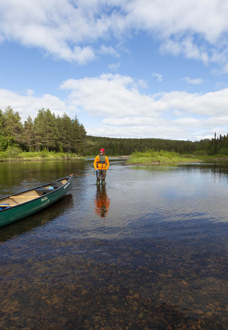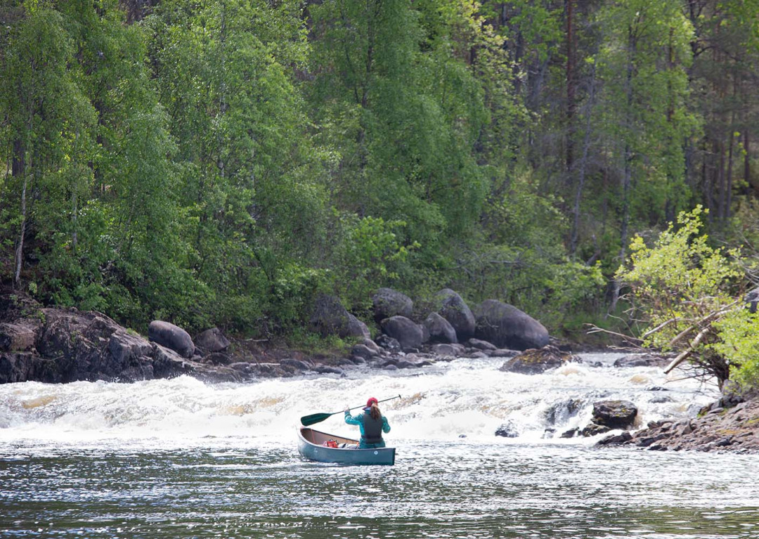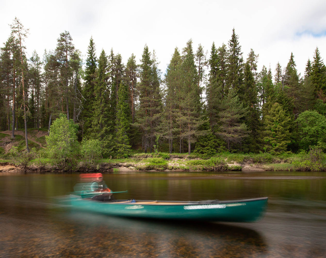 Kesäkuun alun aamuna lämpömittari on kivunnut hätäisesti kolmen asteen yläpuolelle, kun pakkaamme autoon kuvauskaluston ja retkeilyvarusteet. Rukalla tuulee. Aamulla satoi, mutta loppupäiväksi on luvassa poutaa. Keli ei ole järin ihastuttava jokiretkeä ajatellen. Toisaalta kokemuksesta tiedän, että Oulangalla sää voi olla tyystin toisenlainen kuin Rukalla, ja mutkitteleva jokiuoma on pääosin tuulelta suojassa.