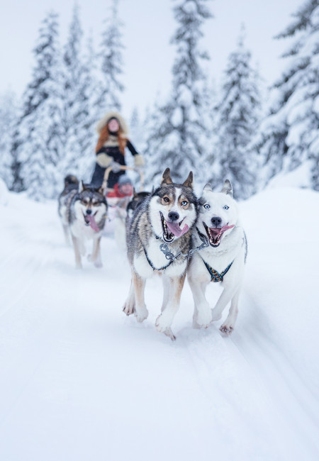 Huskysafari on yksi talviloman kohokohdista. Kyyti rekikoirien vetämässä reessä sopii koko perheelle, ja ohjelmia löytyy lyhyistä pyrähdyksistä useampien kilometrien ja päivien pituisiin huskysafareihin.