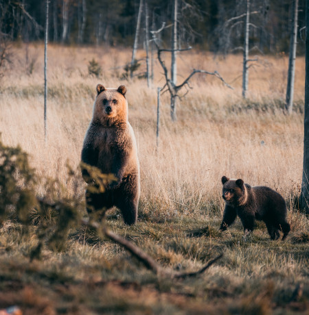 Koko perhe pääsee tutustumaan turvallisesti karhuihin ja muihin suurpetoihin opastetuilla karhunkatseluretkillä. Karhunkatselun paikkoina toimivat yleensä puurakenteiset tuvat, joissa on kuvausaukot kameroita ja kiikareita varten. Karhun lisäksi voit nähdä muitakin erämaan villejä eläimiä kuten suden, ahman ja maa- tai merikotkan.