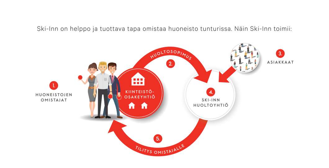 Parasta Ski-Inn omistamisessa on helppous ja hyvä tuotto: Ski-Inn Oy hoitaa kaikki huoneiston kulut ja tilittää omistajalle puhtaan vuokratuoton kahdesti vuodessa. Vuokraus ja huoneiston ylläpito hoituvat vaivattomasti ja tehokkaasti taaten omistajalle myös parhaan mahdollisen tuoton.