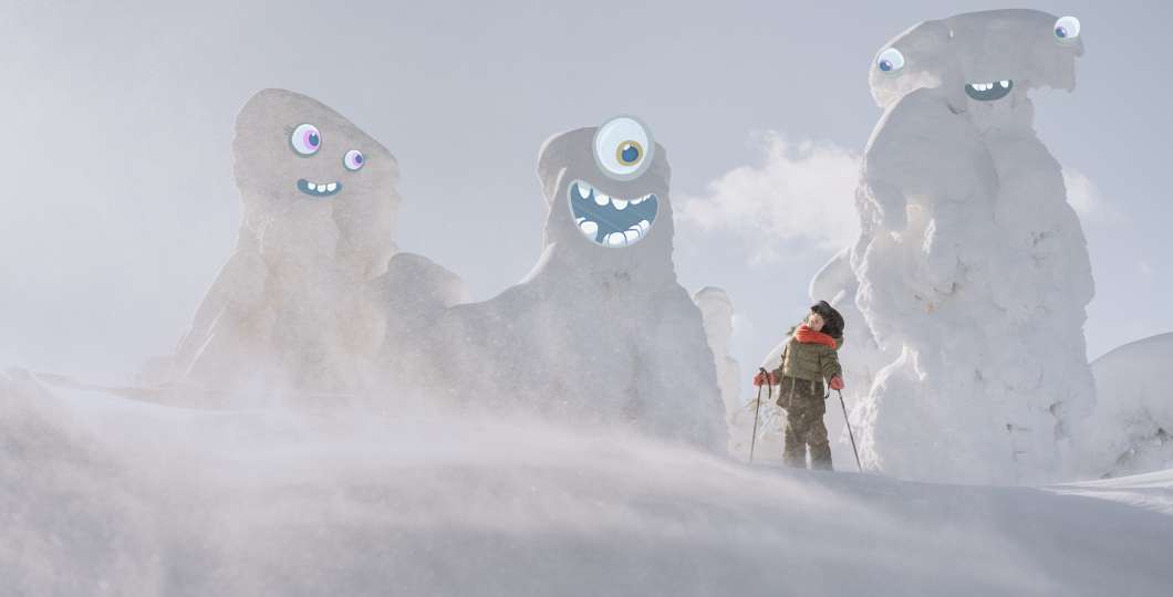 Tykkymonsteri ja lapsi Rukan rinteillä