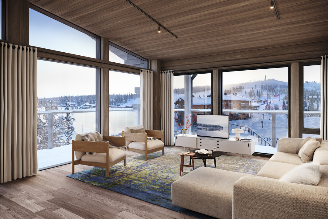 - Valtavaara Chalets -rakennuksen liiketilan olemme alustavasti suunnitelleet elämyspalveluille, jotka keskittyvät hiihineutraaleihin luonnossa liikkumisen tapoihin kuten maastopyöräilyyn, lumikenkäilyyn ja sähkökelkkailuun, Aho kertoo.
