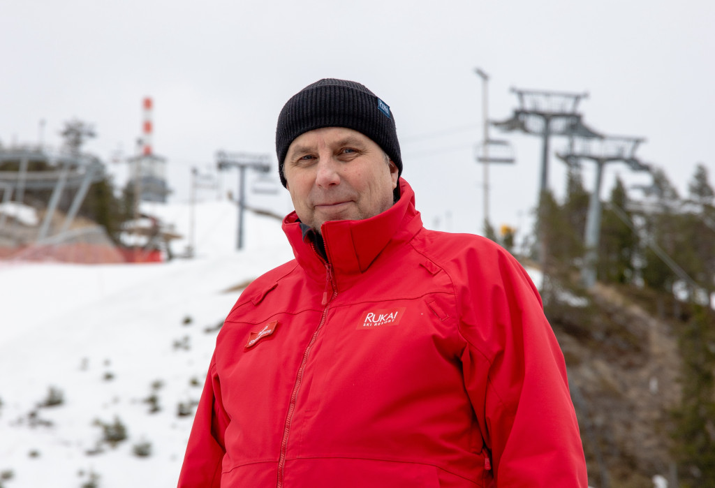 Rukan ja Pyhän rinnetoiminnan johtaja Matti Parviainen kuvattuna Rukan eturinteillä huhtikuussa 2026.