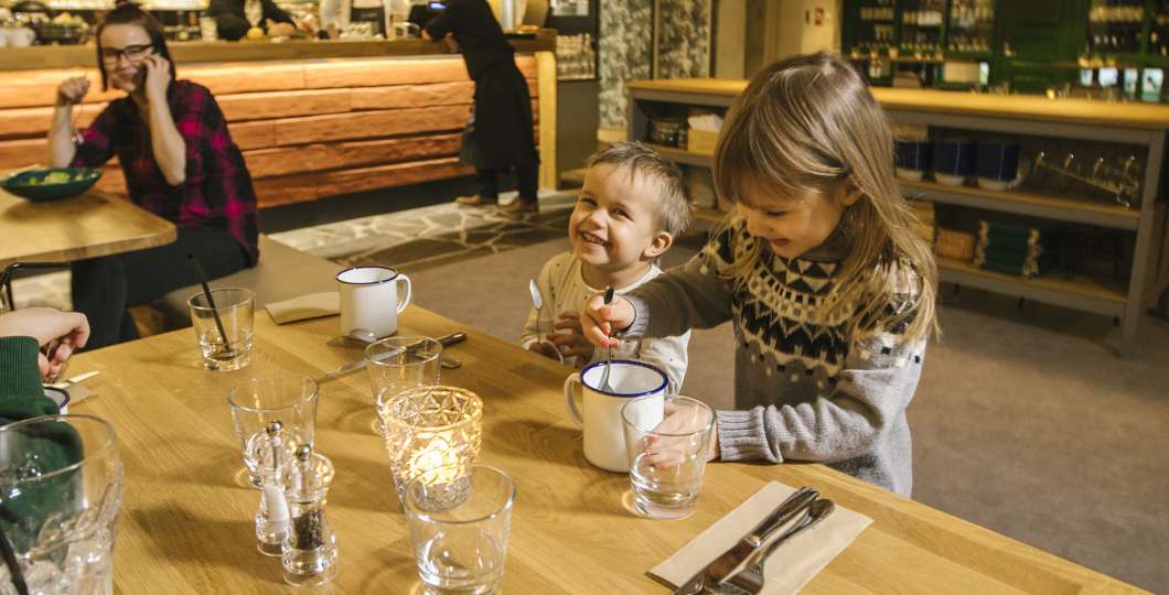 Ruka Valleyssa gondolin ala-asemalla sijaitsevassa Camp Kitchenissä lapset ovat tuttu näky, ja ravintola vakuuttaa ruokalistallaan ja palveluasenteellaan varmasti koko perheen.