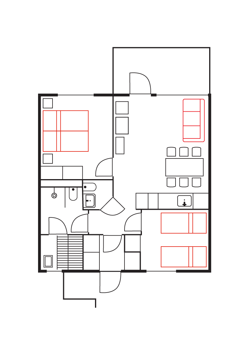 RukaTonttu51-huoneisto sopii esimerkiksi kahdelle pariskunnalle. Huoneistossa on kaksi makuuhuonetta. Oleskelutilan sohva on levitettävissä lisävuoteeksi kahdelle ilman lisämaksua. Lisäksi huoneistossa on tupakeittiö ja takallinen oleskelutila. Omasta saunasta on mukava pulahtaa viereiseen Talvijärveen.