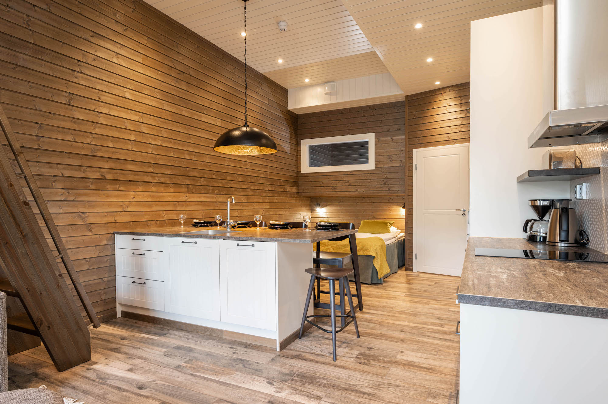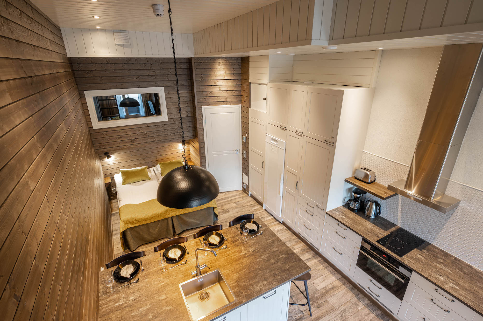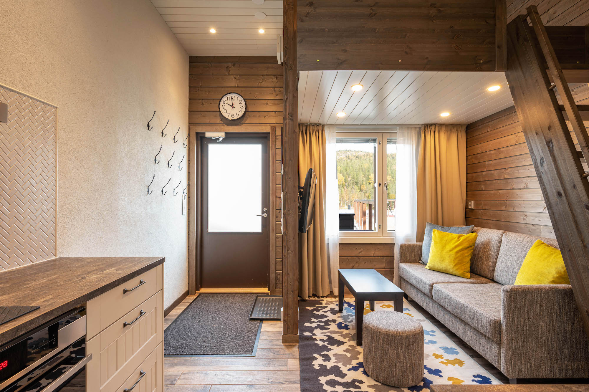 Tämä moderni huoneisto tarjoaa kaiken tarpeellisen nelihenkisen perheen loma-asumiseen. Huonekorkeus on 3,2 metriä, mikä tuo huoneistoon upean tilan tunnun ja mahdollistaa kahden hengen nukkumaparven oleskelutilan ylle. Lisäksi huoneistossa on vuoteet kahdelle.