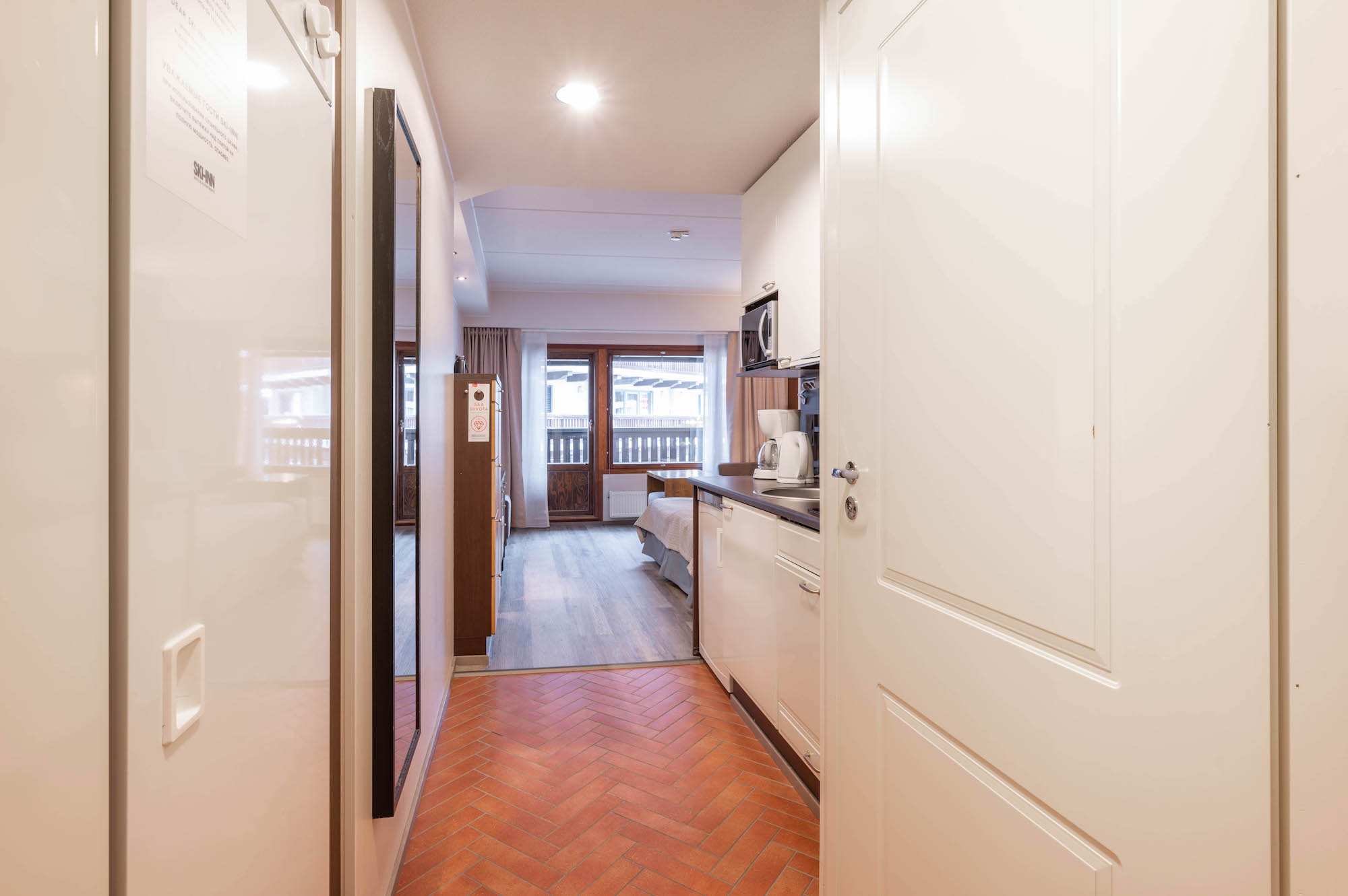 Ski-Inn vastaanotto palvelee hotellin katutasossa.