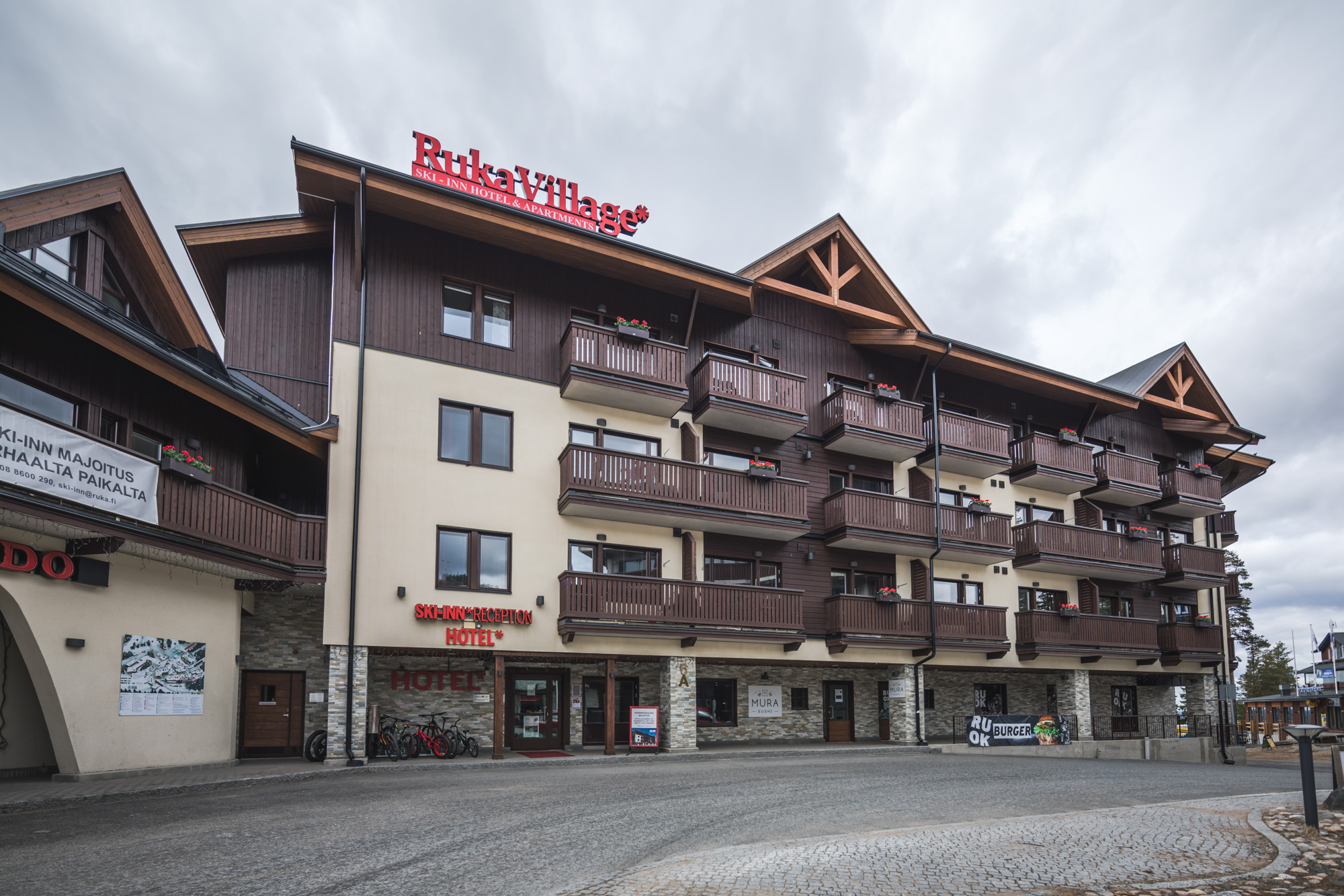 RukaVillage-huoneistot sijaitsevat Rukan kylän ytimessä. Huoneistoista avautuvat näkymät itään Rukan keskusaukiolle ja Eturinteille sekä länteen Kuusamon rauhalliseen luontoon aina Kitkajärvelle saakka. Hotellin yhteydessä on useita ravintoloita, kuten Colorado Bar & Grill, jossa voit lisämaksusta nauttia kattavasta hotelliaamiaisesta. Viereisessä Kauppakeskus Kumpareessa on lisää palveluja: ruokakauppa, ravintoloita, keilahalli sekä kuntosali.