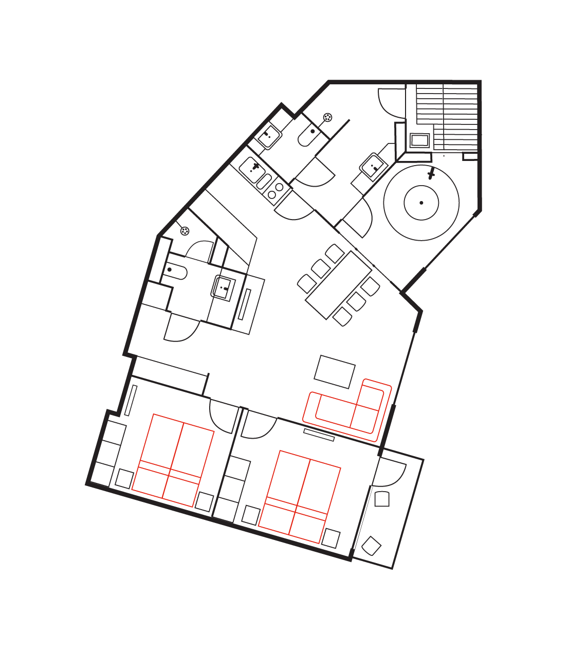 RukaVillage70-huoneistot on remontoitu vuonna 2021. Oleskelutilan ja keittiön lisäksi huoneistossa on kaksi erillistä makuuhuonetta. Oleskelutilan sohva on levitettävissä lisävuoteeksi kahdelle ilman lisämaksua. Huoneistossa on kaksi erillistä WC:tä, joista toisessa on myös pesukone. Valoisalta saunaosastolta kulku lämpimälle parvekkeelle, jossa on rentouttava poreallas. Huomioithan, että porealtaan käyttö ei kuulu huoneiston hintaan vaan laskutetaan erikseen kulloinkin voimassa olevan hinnaston mukaisesti.