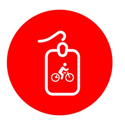 Ruka-Kuusamo pyöreä punainen ikoni maastopyöräilijä