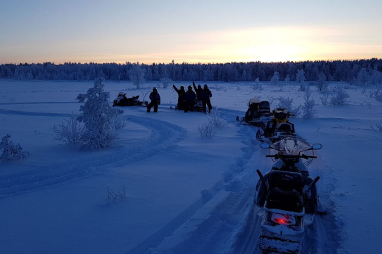 Kun ilta hämärtyy, käynnistämme kelkat ja ajamme tähtitaivaan alla. Retken aikana saatamme hyvällä tuurilla nähdä revontulia.