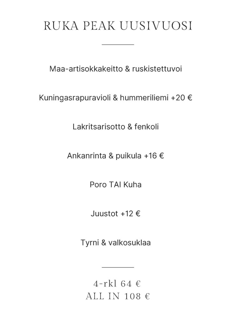 Ruka Peak Uudenvuoden illallinen 31.12.