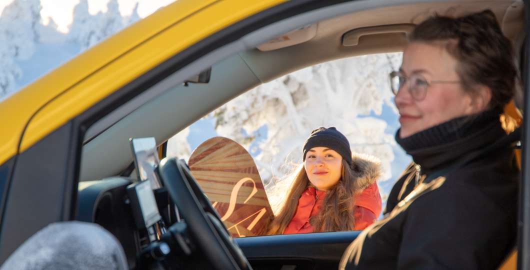 Ruka-Kuusamon taksit ovat pääosin tilatakseja, joissa myös laskettelu- ja lautailuvälineet kulkevat helposti matkassa.