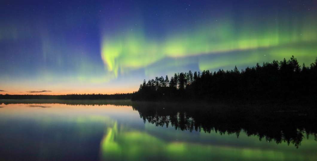 Double aurora eli revontulien heijastuminen tyynen veden pinnasta on monen kaukaisista maista saapuneen vieraamme toivelistalla. Loka-marraskuussa tämä elämys on mahdollista kokea Kuusamossa järvien tai lampien rannalla.