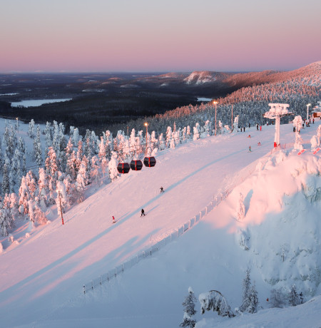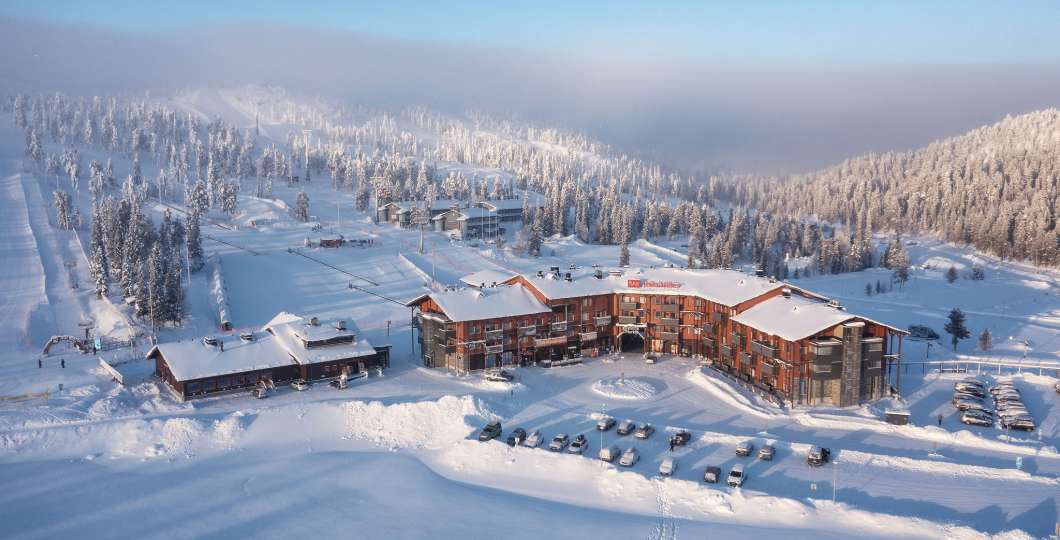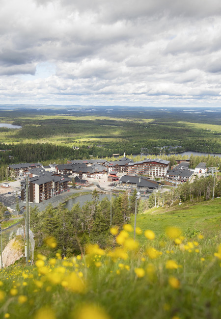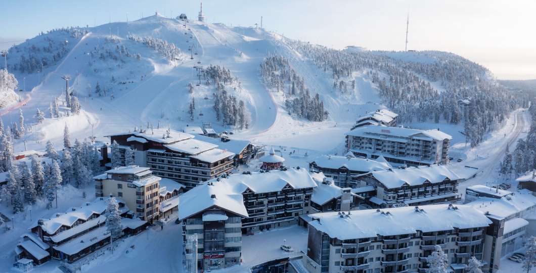 Ruka Valleyn kyläkeskittymä Itä-Rukalla, Vuosselin rinnealueella. Kuva Harri Tarvainen.